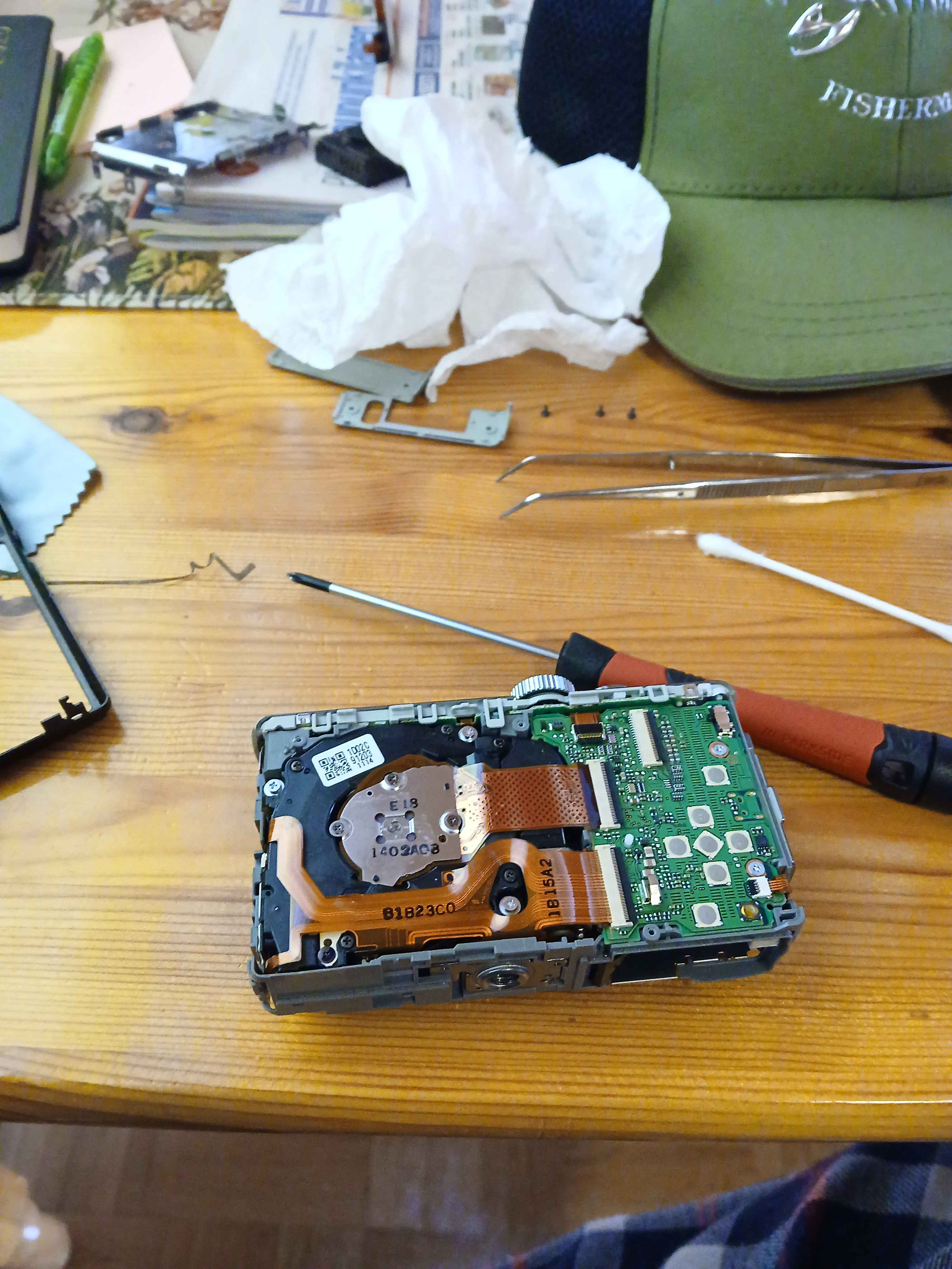 Disassembling the camera was surprisingly easy, and so doing it twice was pretty fun actually. I got all the remaining grease out from the pieces and thankfully none of it had actually gotten into the components; only inside the shell. The components and sensor are protected by a metal barrier that sits right below the display, so that was to thank for.
