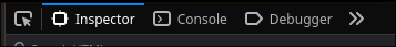 With the typical layout of the inspector, you will find your other developer-tool pages at the top. Click on the symbol at the left, this will let you click on an element on the page to view info on it and select it.